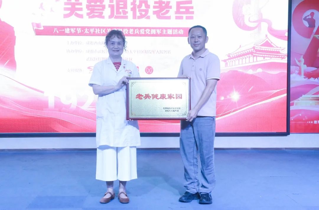 活动中,还一个重要的环节——授牌仪式。成都西南脑科医院正式成为太平社区退役老兵每年定点体检单位,这一举措不仅为退役老兵提供了便捷的体检服务,更是对他们健康的一份深情关怀。现场掌声雷动,大家纷纷用热烈的掌声见证了这一重要时刻,共同为退役老兵们的健康福祉喝彩。